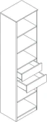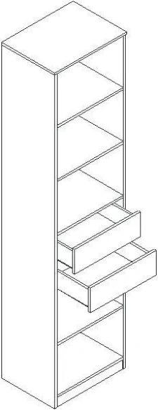 Стеллаж имеет пять открытых полок и два выдвижных ящика на шариковых направляющих, где вы можете разместить книги, аксессуары и другие предметы декора.