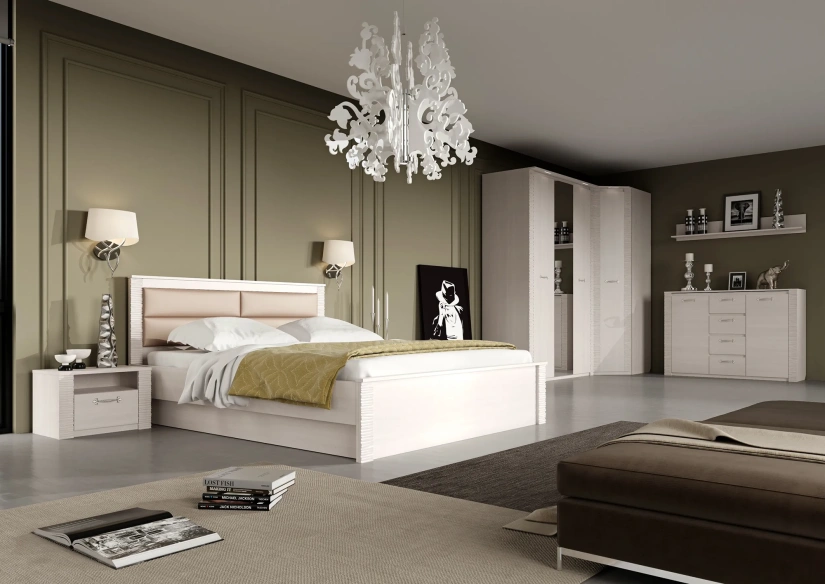 Серия мебели для спальни с нежным названием "Элана" такая же мягкая и романтичная. В ней воплощены самые актуальные тенденции мебельной индустрии, основой которых сегодня является акцент на мягкие, природные, естественные линии. Все это отражается в деталях коллекции: фрезерованные планки, подсветка, мягкие элементы кровати, - делают эту спальню изысканной и необыкновенной.