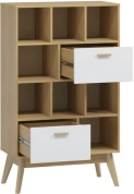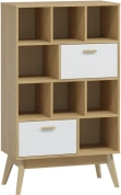 Стеллаж "Калгари", выполненный в скандинавском стиле, решит проблему хранения, позволив определить конкретное место для разных небольших предметов. Внутреннее наполнение модуля состоит из двух выдвижных ящиков и восьми ниш.