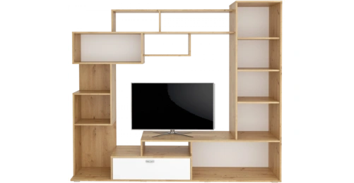 Диско – корпусная мебель, выполненная в оригинальном ассиметричном дизайне, который придется по душе ценителям стиля “модерн”. Вместительные полки, идущие уступами, смотрятся оригинально и могут разнообразить интерьер не только гостиной, но и спальни или детской комнаты. Наличие широкого шкафа и ящиков (выдвижных и с дверцами) делает комплект более функциональным – в них можно хранить постельное белье, игрушки и другие необходимые вещи, а высота в 181 см позволит дотянуться до полок даже ребенку.