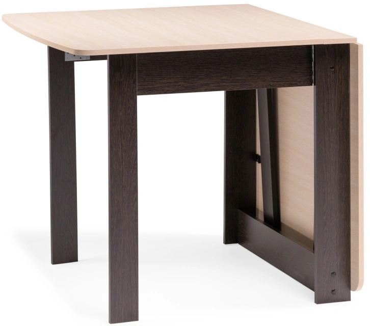 Материал каркаса - ЛДСП; Материал столешницы - ЛДСП; Цвет каркаса - Венге / дуб молочный; Цвет столешницы - Венге / дуб молочный; Ширина - 86,5; Высота - 78,5; Длина стола в разложенном виде - 161,5; Длина - 14,5;