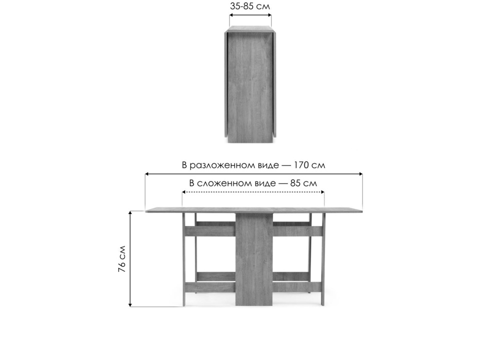 Материал каркаса - ЛДСП; Материал столешницы - ЛДСП; Цвет каркаса - Дуб крафт белый; Цвет столешницы - Дуб крафт белый; Ширина - 85; Высота - 76; Длина стола в разложенном виде - 170; Длина - 35;