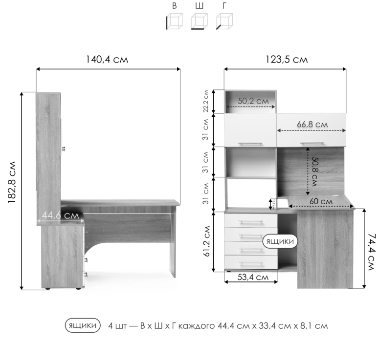 С ящиками, С полками, С надстройкой, С местом под системный блок, С тумбами