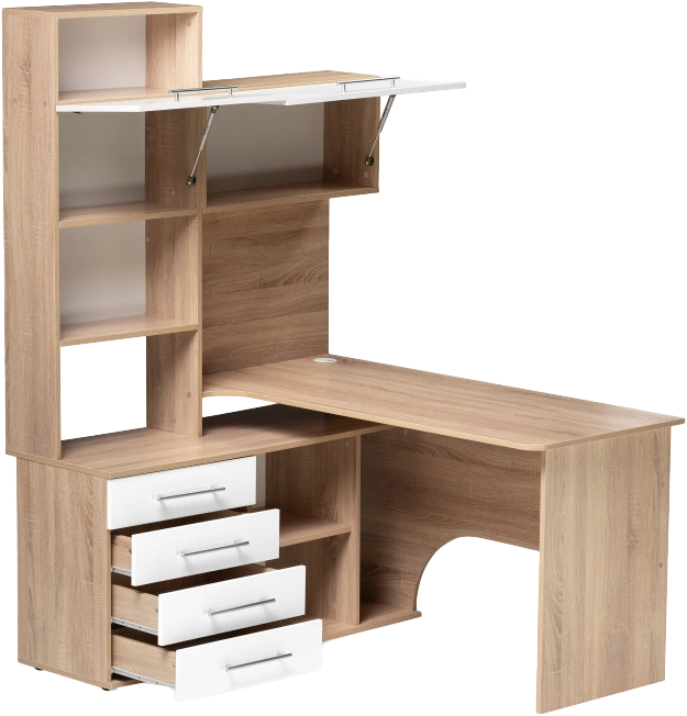 Стол компьютерный левый КСТ-14Л, дуб сонома / белый