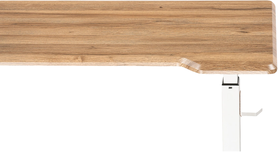 Столешница из МДФ с углублением под кресло обеспечивает удобство и комфорт во время работы, а крючок под наушники или другую периферию позволяет держать все необходимые предметы в удобном месте.
