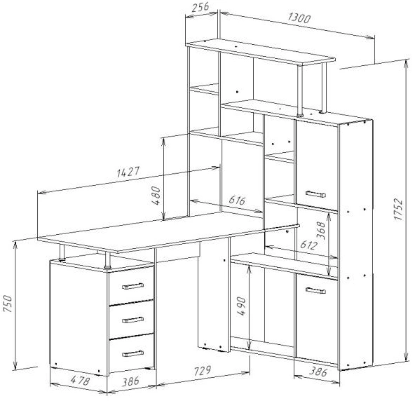 С ящиками, С полками, С надстройкой, С местом под системный блок, С тумбами, Со шкафом
