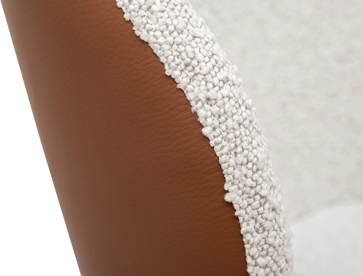 Обеденный мягкий стул кремового цвета с терракотовой контрастной отделкой спинки и ножек будет уместно смотреться в классическом или современном минималистичном интерьере. Практичный материал обивки, высокая спинка, удобная форма – этот дизайнерский стул соответствует актуальным интерьерным трендам и станет выгодной инвестицией в интерьер. Он подойдет как для жилых, так и бизнес-интерьеров. Качественный наполнитель обеспечивает комфортную посадку, а износостойкая обивка из экокожи и фактурной рогожки – простой уход и превосходную эстетику. Оригинальный стул сочетает в себе различные материалы. Каркас металлический, ножки декорированы терракотовой экокожей. Удобное сиденье и внутренняя сторона спинки из светлой рогожки. Габариты сиденья: ширина 49см, глубина 47,5см, высота 47,5см