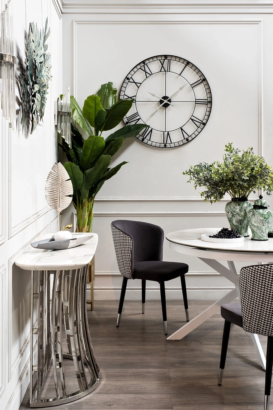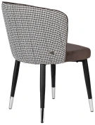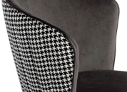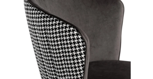 Оригинальный стул выполнен в комбинации приятного серо-коричневого велюра на лицевой части и текстиля с орнаментом "гусиная лапка" на тыльной части спинки. Оформление спинки - гладкая внутренняя поверхность и волнистая внешняя форма с вертикальной прострочкой. Габариты сиденья: ширина 47см, глубина 45см, высота от пола - 48см.