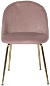 Изящный стул с обивкой из велюра модного пепельно-розового цвета украсит вашу столовую или кухню. Высококачественная износостойкая обивка, прочные металлические ножки цвета матового золота, округлые линии спинки и сиденья делают этот стул практичным и изысканным предметом мебели. Наполнитель пенополиуретан. Размер сиденья: Г43*Ш45*В47см.