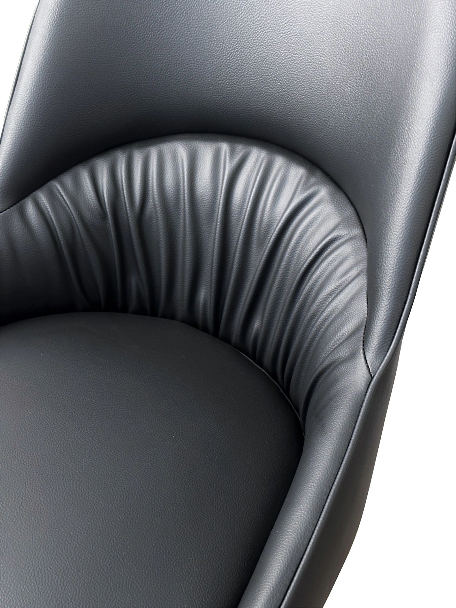 Сиденье и спинка в обивке из экокожи черного цвета.