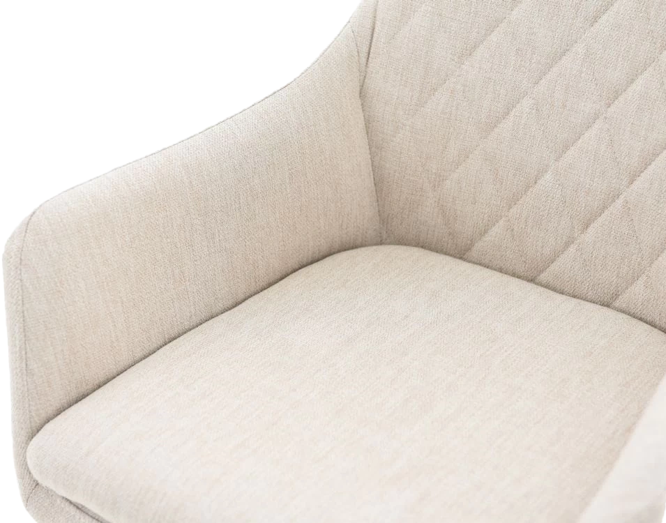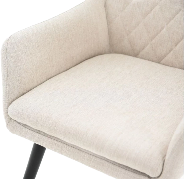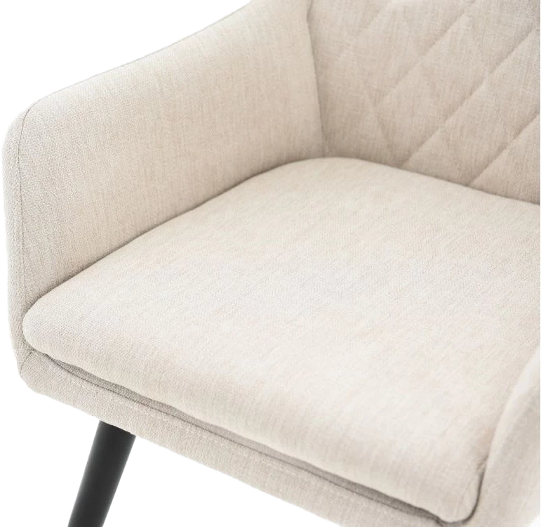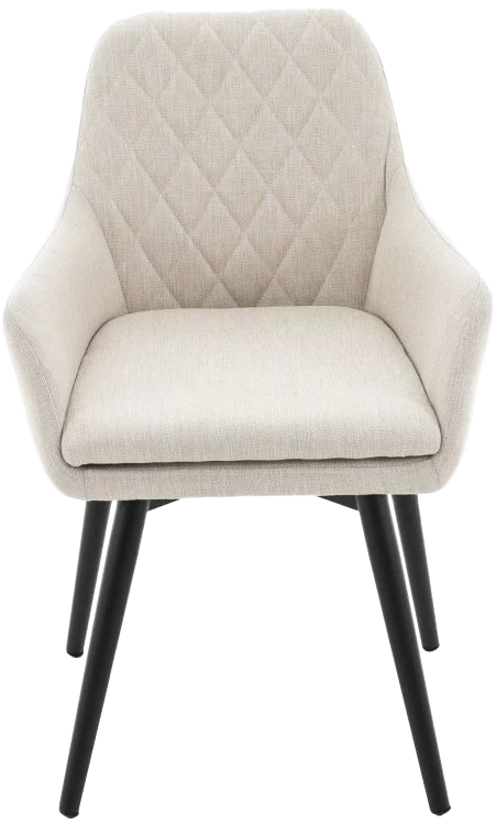 Стул для кухни «Ardeko» с подлокотниками, в обивке из рогожки Nova 02, опоры металлические черного цвета. Изготовлен на металлическом, цельносварном каркасе, опоры, окрашенные порошковой краской, выполнены из трубы d38*1,5мм. При производстве используется только высоко-качественная сталь.