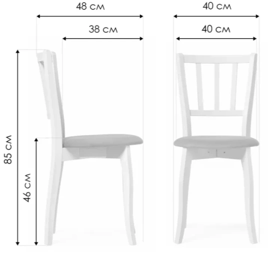 Материал каркаса - Массив березы; Материал сиденья - Велюр; Материал ножек - Массив березы; Материал обивки - Велюр; Цвет каркаса - Слоновая кость; Цвет сиденья - Бежевый; Цвет ножек - Слоновая кость; Цвет обивки - Бежевый; Ширина - 41; Глубина - 50; Высота - 85; Ширина сиденья - 40; Глубина сиденья - 40; Высота сиденья - 45;