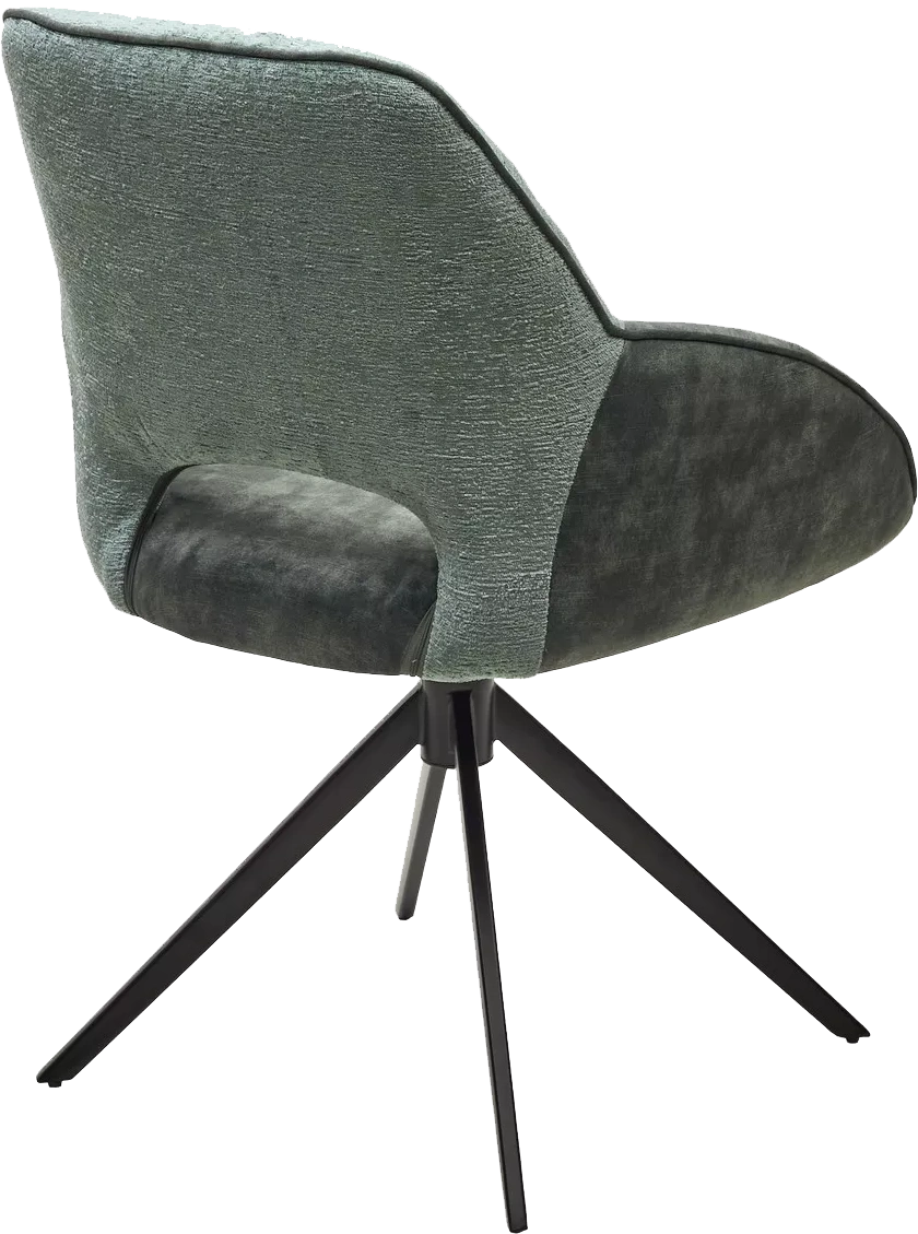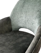 Обивка спинки - фактурный велюр зеленого цвета, сиденья - велюр темно-зеленого цвета.