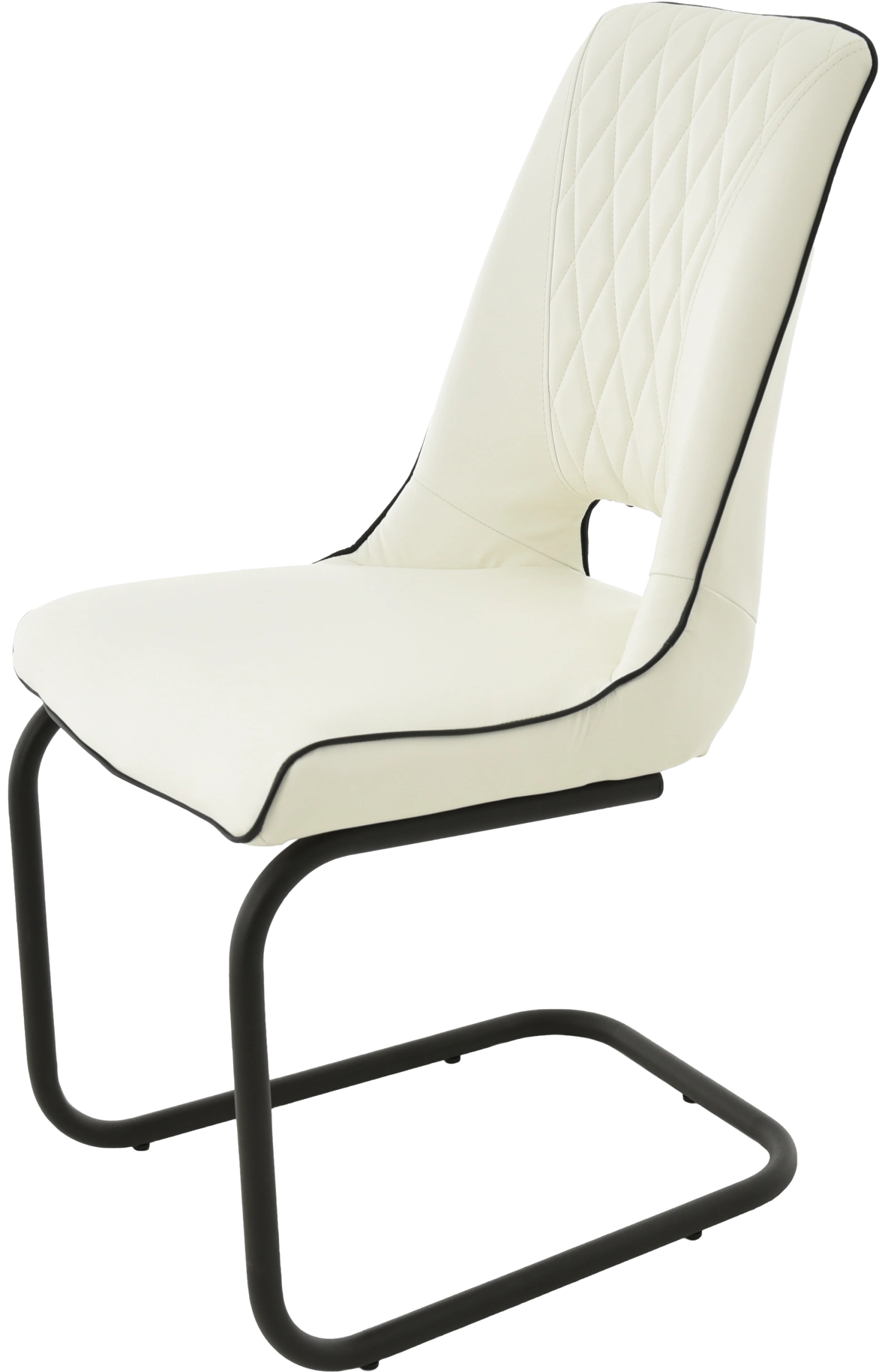 Кухонный стул на металлокаркасе «Эльзас» белого цвета в обивке из кожзама Батлер 08, с черным кантом Нитро Блэк.
