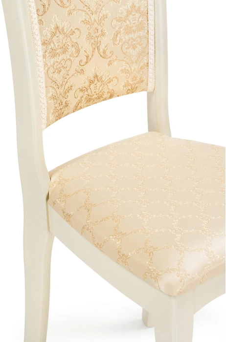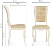 Материал каркаса - Массив березы; Материал сиденья - Ткань; Материал ножек - Массив березы; Материал обивки - Ткань; Цвет каркаса - Белый; Цвет сиденья - Бежевый; Цвет ножек - Белый; Цвет обивки - Бежевый; Ширина - 44; Глубина - 52; Высота - 95; Ширина сиденья - 44; Глубина сиденья - 41; Высота сиденья - 50;