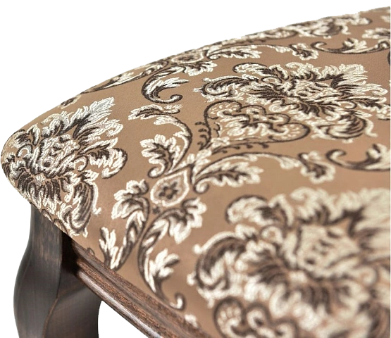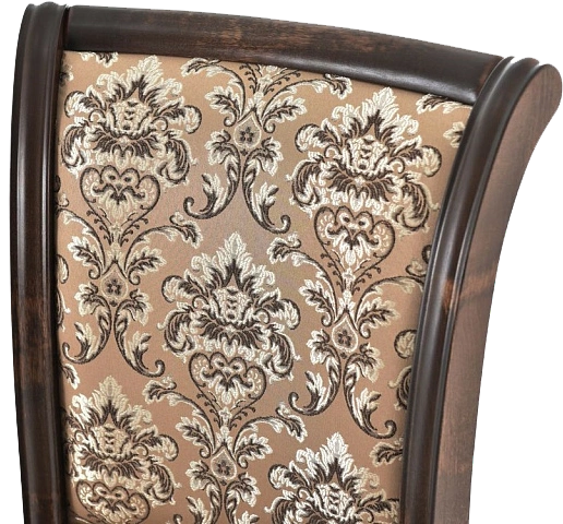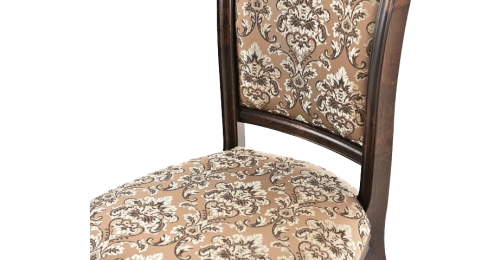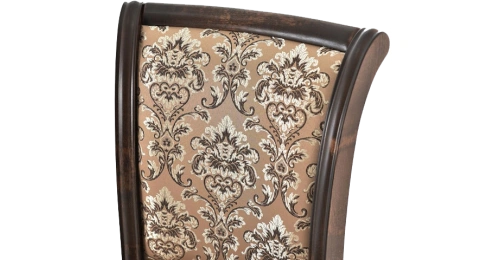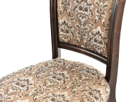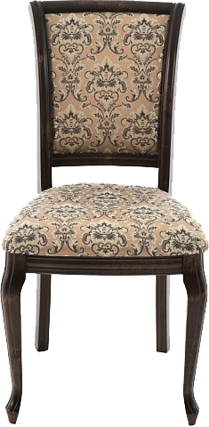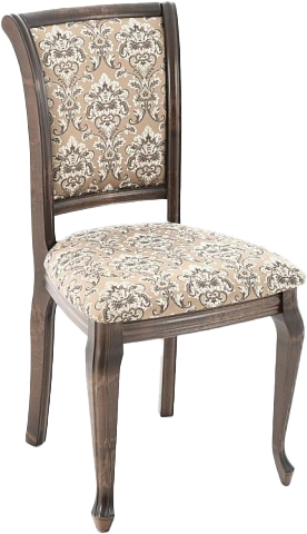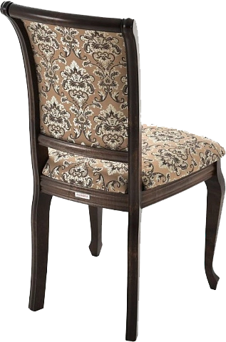 Деревянный стул «Кабриоль», в крашении Тон 7 (Орех темный), в обивке из шенилла Андрис Вензель 37/1. Материал изготовления каркаса стула: массив березы с окраской различных тонов, в том числе и в сочетании с патиной (искусственно состаренное покрытие дерева). Варианты модели стула предусматривают изготовление из различных тканей: шелка, экокожи и рогожки, а так же с жестким сиденьем.