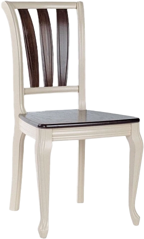 Деревянный стул «Кабриоль» с жестким сиденьем, в комбинированном крашении (Комби 3: Слоновая кость+орех темный).