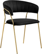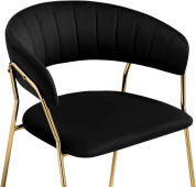 Высота спинки: 33 см. Материал каркаса - Металл; Материал сиденья - Велюр; Материал ножек - Металл; Материал обивки - Велюр; Цвет каркаса - Золотой; Цвет сиденья - Black; Цвет ножек - Золотой; Цвет обивки - Black; Ширина - 60; Глубина - 52; Высота - 79; Ширина сиденья - 49; Глубина сиденья - 46; Высота сиденья - 47;