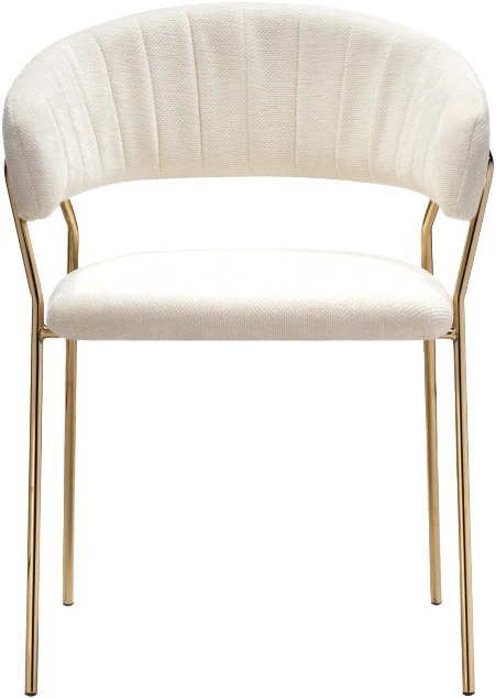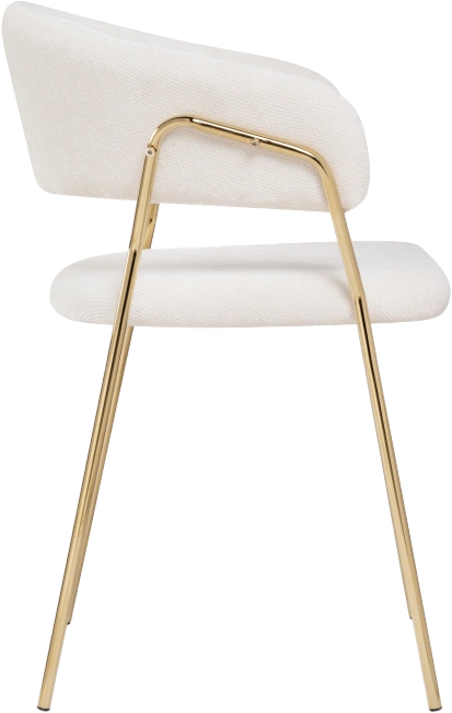 Высота спинки: 33 см. Материал каркаса - Металл; Материал сиденья - Ткань; Материал ножек - Металл; Материал обивки - Ткань; Цвет каркаса - Золотой; Цвет сиденья - Белый; Цвет ножек - Золотой; Цвет обивки - Белый; Ширина - 60; Глубина - 52; Высота - 79; Ширина сиденья - 49; Глубина сиденья - 46; Высота сиденья - 47;
