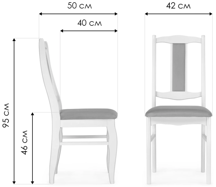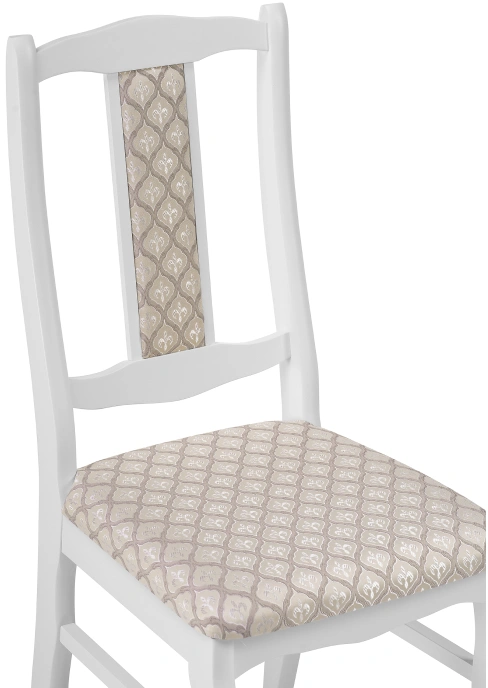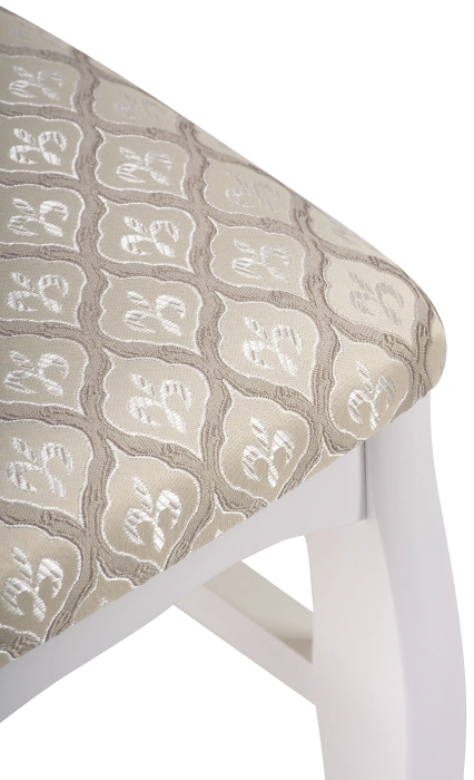 Материал каркаса - Массив дерева; Материал сиденья - Ткань; Материал ножек - Массив дерева; Материал обивки - Ткань; Цвет каркаса - Белый; Цвет сиденья - Бежевый; Цвет ножек - Белый; Цвет обивки - Бежевый; Ширина - 42; Глубина - 50; Высота - 95; Ширина сиденья - 42; Глубина сиденья - 40; Высота сиденья - 46;