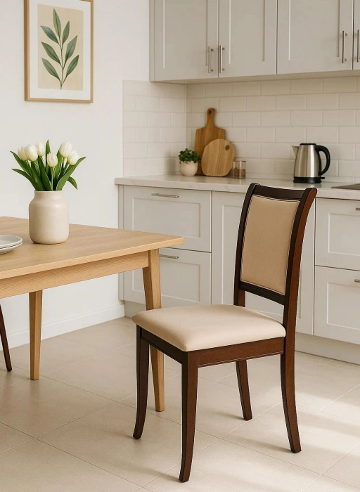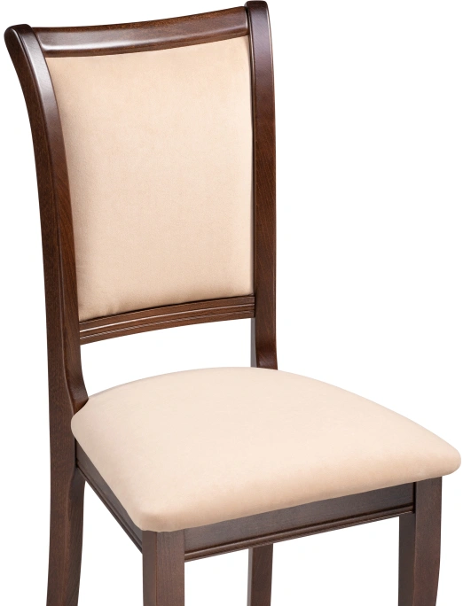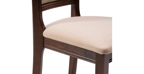 Материал каркаса - Массив бука; Материал сиденья - Велюр; Материал ножек - Массив бука; Материал обивки - Велюр; Цвет каркаса - Орех; Цвет сиденья - Бежевый; Цвет ножек - Орех; Цвет обивки - Бежевый; Ширина - 45; Глубина - 55; Высота - 94; Ширина сиденья - 40; Глубина сиденья - 42; Высота сиденья - 49;