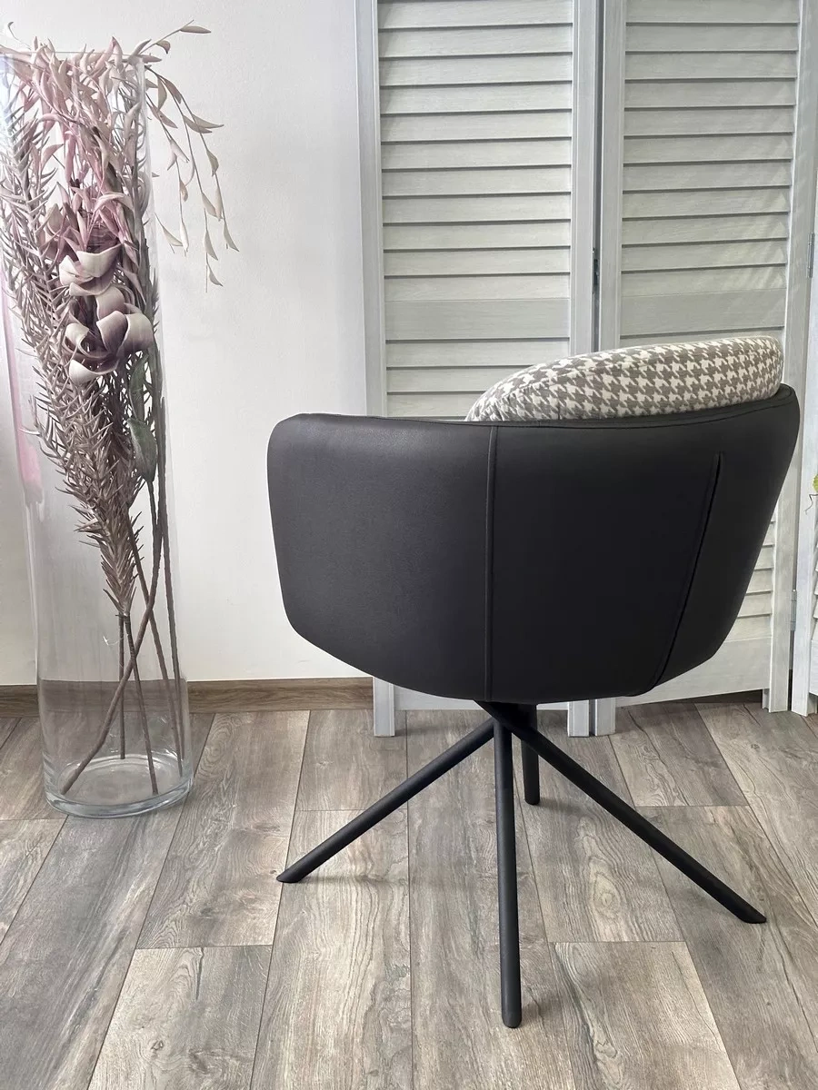 Сиденье и спика - шенилл "гусиная лапка", задняя часть экокожа темно-серого цвета..