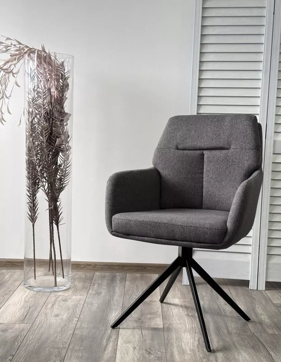 Стул MOON поворотный на 360 градусов, серый Family-022, черный каркас