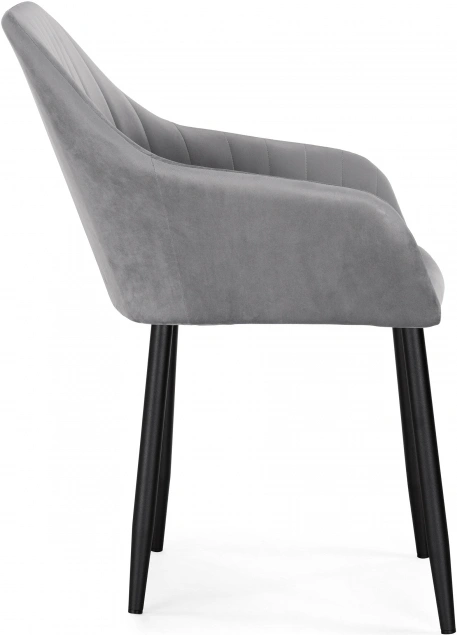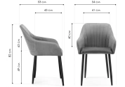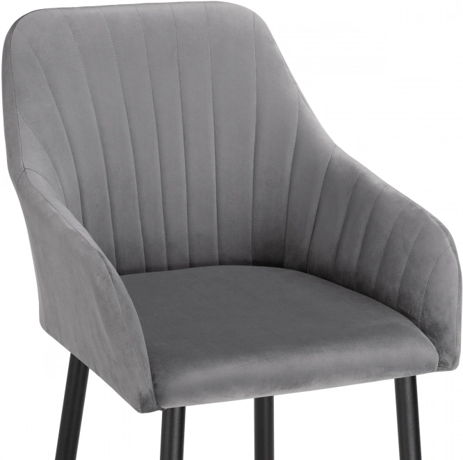 Высота подлокотников: 63 см. Материал каркаса - Металл; Материал сиденья - Велюр; Материал ножек - Металл; Материал обивки - Велюр; Цвет каркаса - Черный; Цвет сиденья - Серый; Цвет ножек - Черный; Цвет обивки - Серый; Ширина - 54; Глубина - 53; Высота - 82; Ширина сиденья - 41; Глубина сиденья - 43; Высота сиденья - 49;
