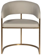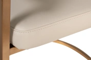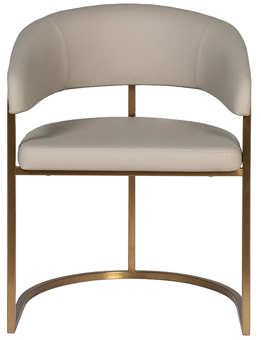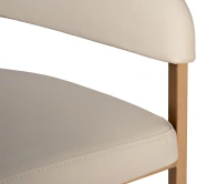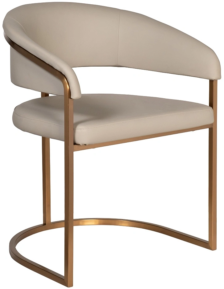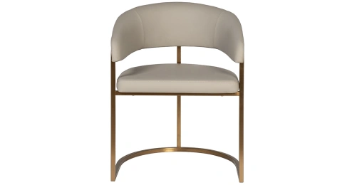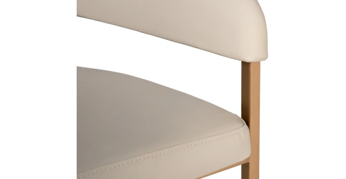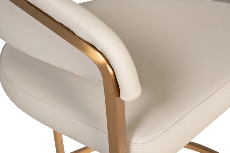 Современные интерьеры стремятся к балансу форм и назначения мебели. Этот обеденный стул из искусственной кожи идеально вписывается в концепцию эстетики минимализма. Лаконичные формы, сочетание искусственной кожи с металлическим основанием в матовом золотом оттенке делают его актуальным выбором для интерьеров в стиле современный минимализм, mid-century, modern и неоарт-деко. Экокожа придает стулу элегантную тактильность, но при этом остается практичной в эксплуатации. Конструкция с округлой спинкой создает ощущение защищенности и уюта, а мягкое сиденье обеспечивает комфортную посадку. Этот стул станет гармоничным элементом обеденной зоны, подчёркивая внимание к деталям и трендовым материалам.
