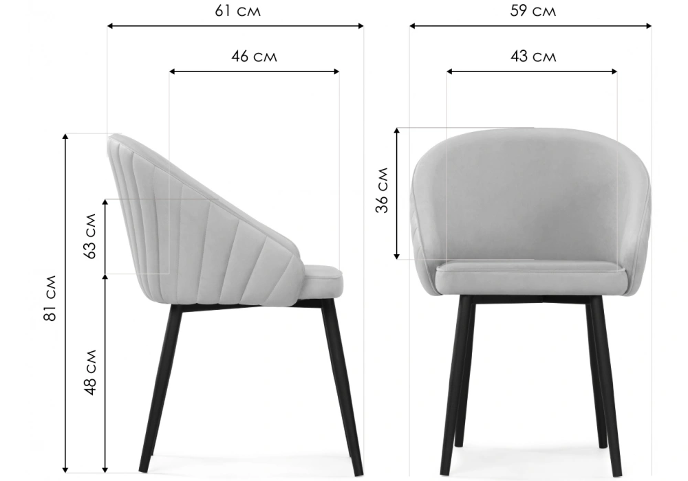 Материал каркаса - Металл; Материал сиденья - Велюр; Материал ножек - Металл; Материал обивки - Велюр; Цвет каркаса - Черный; Цвет сиденья - Бежевый; Цвет ножек - Черный; Цвет обивки - Бежевый; Ширина - 59; Глубина - 61; Высота - 81; Ширина сиденья - 43; Глубина сиденья - 46; Высота сиденья - 48;