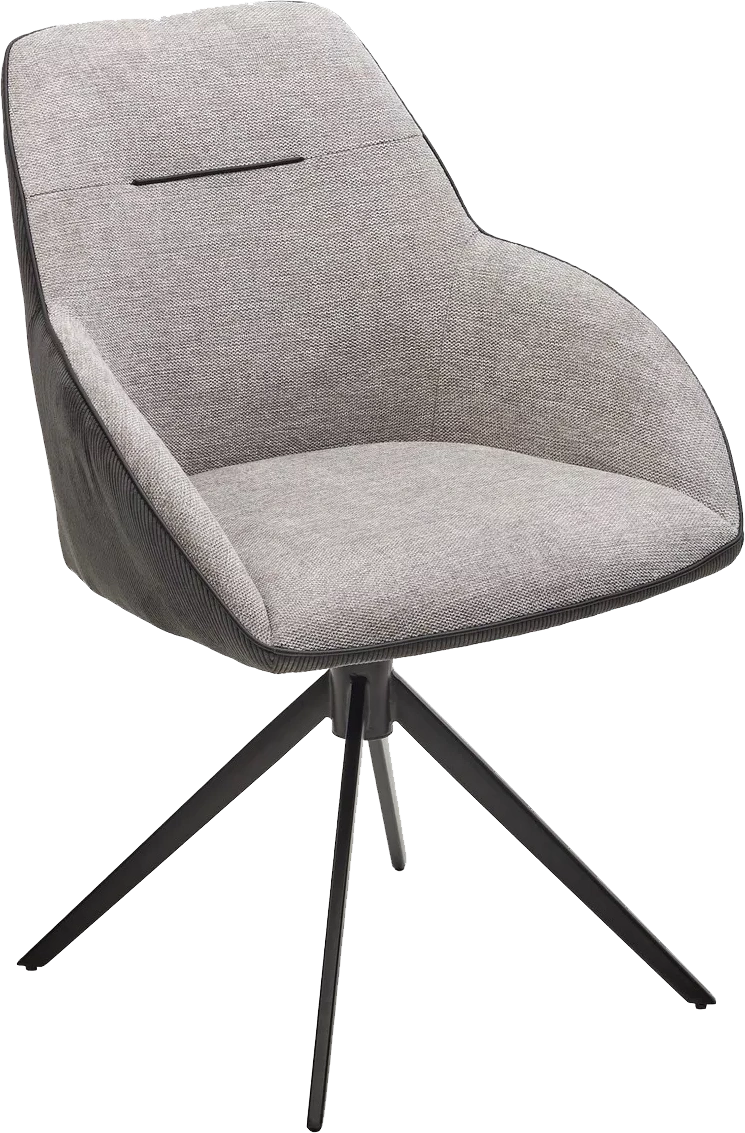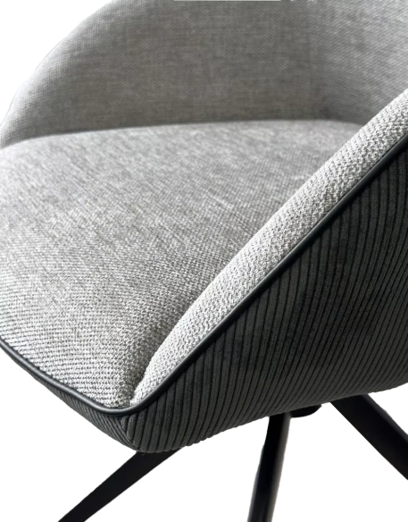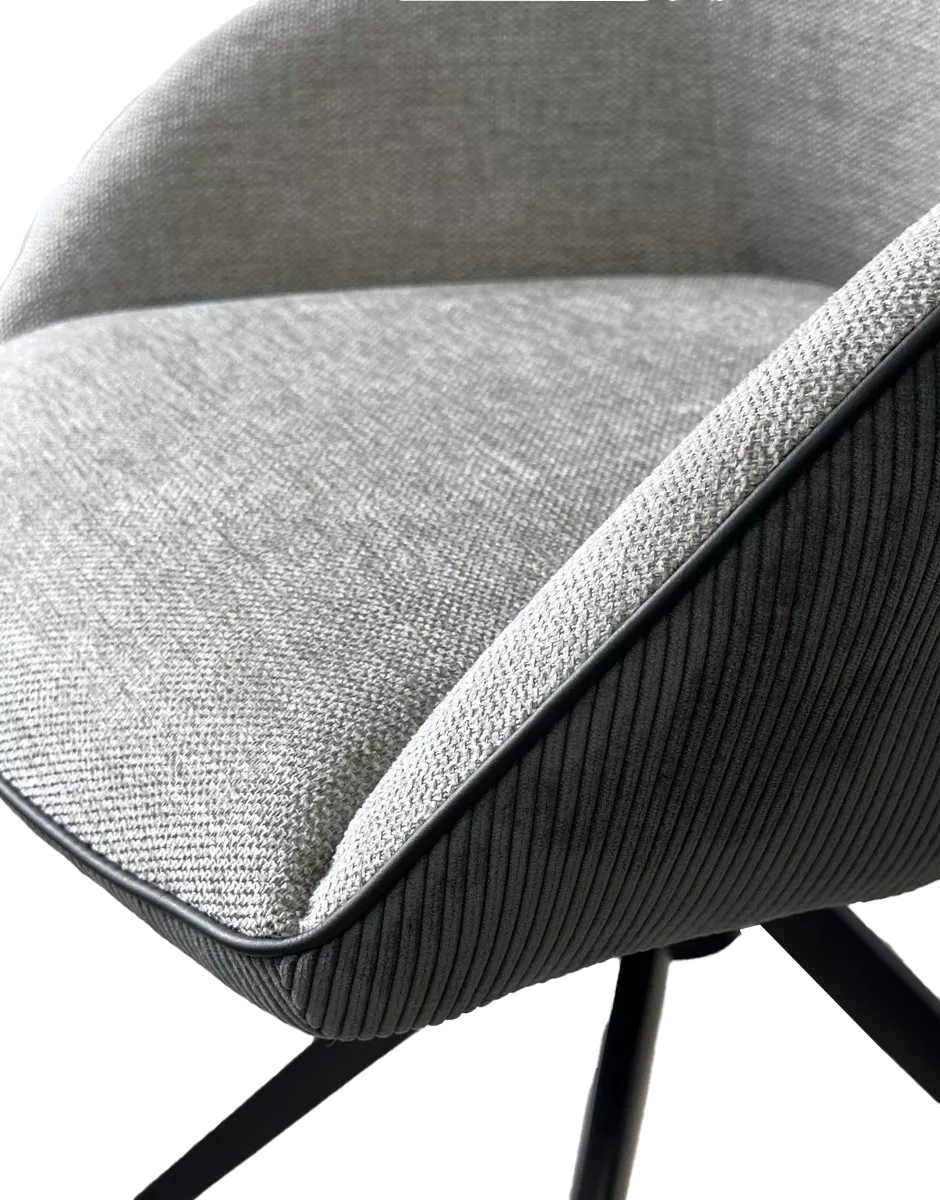Обивка сиденья и спинки с лицевой стороны - ткань серого цвета, с тыльной стороны - фактурный велюр темно-серого цвета. Кант черного цвета.