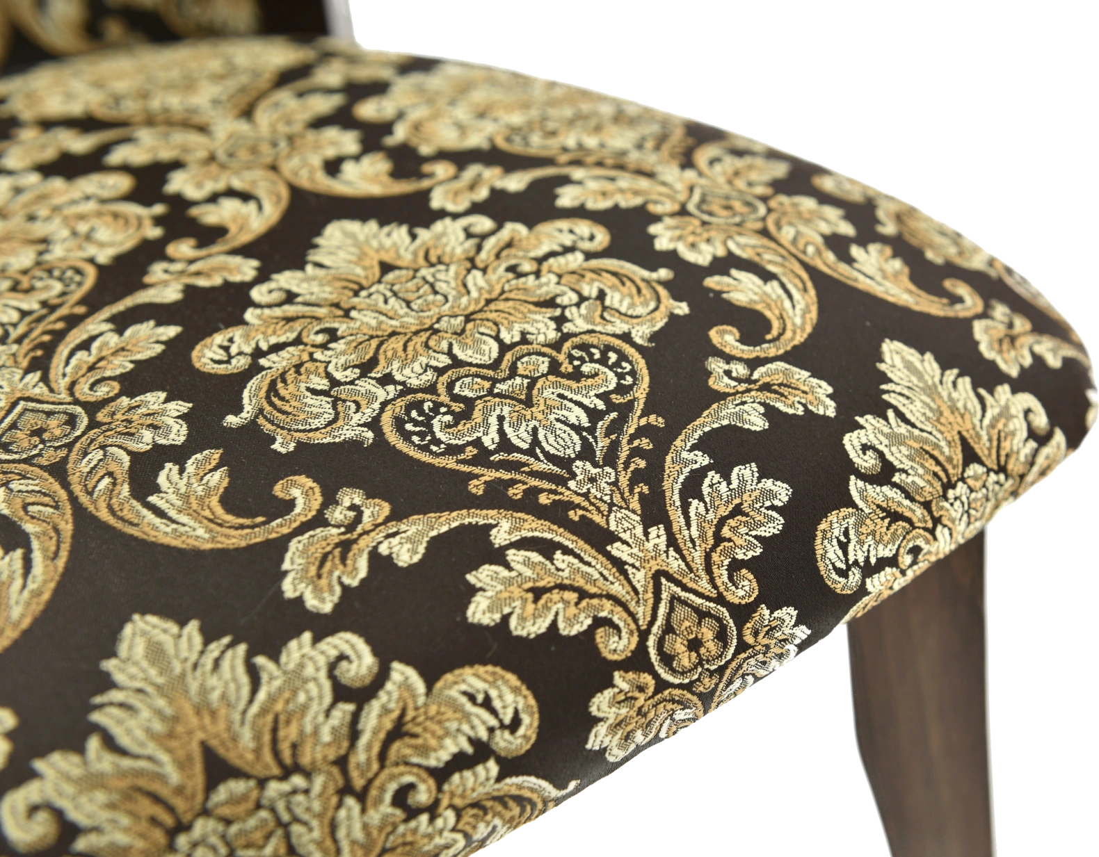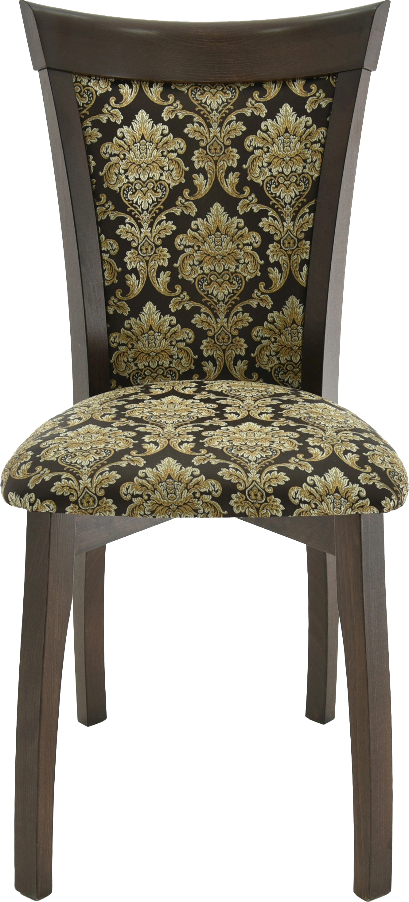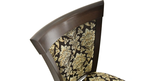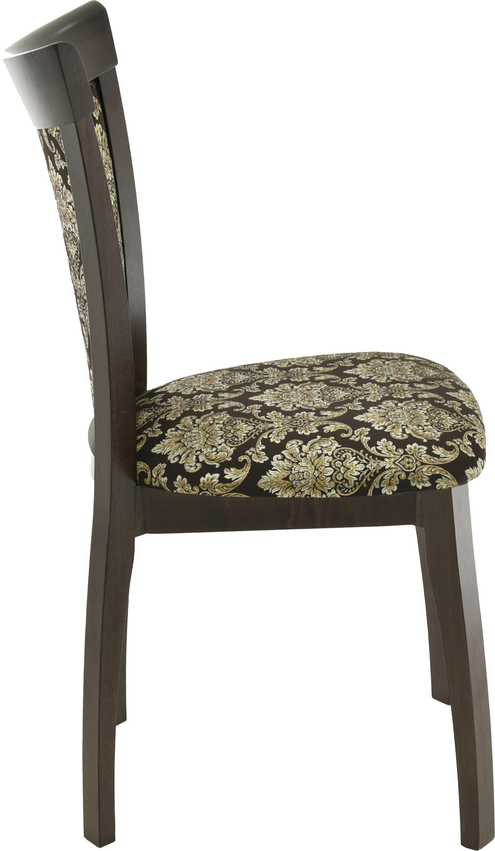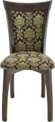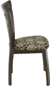 Деревянный стул «Тулон» с мягкой спинкой, в крашении Тон 7 (Темный орех), ткань Андрис вензель 101-2. Материал изготовления каркаса стула: массив березы с окраской различных тонов, в том числе и в сочетании с патиной (искусственно состаренное покрытие дерева). Варианты модели стула предусматривают изготовление из различных тканей: шелка, экокожи и рогожки, а так же с жестким сиденьем.