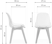 Высота спинки: 47 см. Материал каркаса - Массив бука; Материал сиденья - Пластик; Материал ножек - Массив бука; Цвет каркаса - Натуральный; Цвет сиденья - Прозрачный; Цвет ножек - Натуральный; Ширина - 47; Глубина - 53; Высота - 81; Ширина сиденья - 37; Глубина сиденья - 39; Высота сиденья - 43;