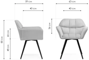 Высота подлокотников - 66 см. Материал каркаса - Металл; Материал сиденья - Велюр; Материал ножек - Металл; Материал обивки - Велюр; Цвет каркаса - Черный; Цвет сиденья - Бежевый; Цвет ножек - Черный; Цвет обивки - Бежевый; Ширина - 63; Глубина - 59; Высота - 80; Ширина сиденья - 40; Глубина сиденья - 40; Высота сиденья - 48;