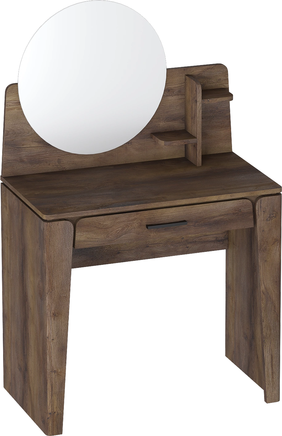 Туалетный столик с надстройкой "Мальта" оснащен круглым зеркалом и полками, выполнен в натуральных оттенках, он подойдет как для классической, так и для современной спальни.