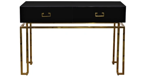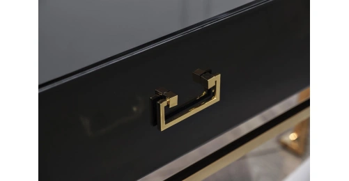 Представленная консоль с ящиками поможет воплотить смелые дизайнерские фантазии. Если поместить такую черную консоль на светлом фоне, то она акцентно привлечет внимание на себя. Современная консоль может иметь разные способы применения. Однако основная ее задача – украсить обстановку, не перегружая ее. Консоль из стекла добавит обстановке лоска и богемного шика. Спальня или гостиная – такой столик станет отличным дополнением современной обстановки. Два вместительных ящика помогут вам раздельно хранить необходимые вещи.