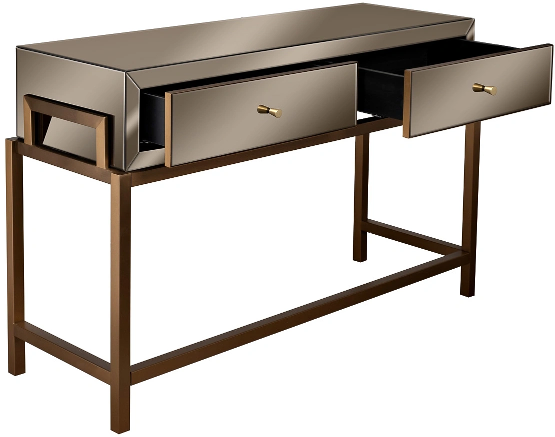 Эта консоль с зеркальными фасадами — как драгоценность в интерьере. Её отражающая фактура придаёт пространству эффект визуального расширения и наполненности. Чёткая геометрия форм, лаконичные линии и акценты цвета тёплого металла делают её выразительным элементом для интерьеров в стиле new ар-деко, современная классика или люкс минимализм. Идеальна как зеркальная консоль для гостиной, холла или спальни, она объединяет выразительный дизайн и практичность, сохраняя легкость и элегантную строгость в каждом штрихе.