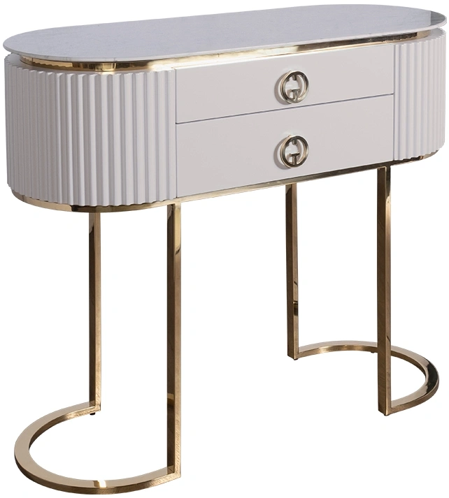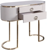 Роскошная консоль с ящиками из коллекции LUCHIANO станет красивым дополнением к интерьеру спальни или гостиной. Для придания гламура помещению, изделие можно использовать для размещения на нем глянцевых журналов и декоративных украшений. На консоль с мраморной столешницей можно установить вазу с живыми цветами или комнатное растение. Выдвижные ящики позволят спрятать личные вещи или документы от посторонних глаз. СВЕТЛО-СЕРЫЙ цвет корпуса гармонирует с золотистыми элементами.