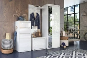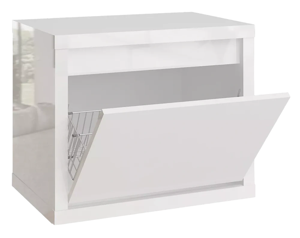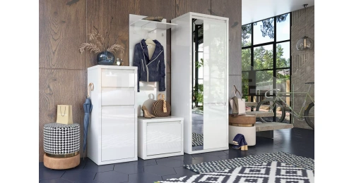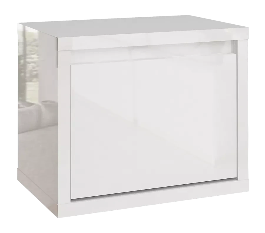 Фасады изготовлены из 16 мм ламинированной древесностружечной плиты производства компании «ЭГГЕР» - цвет «Белый». На лицевые поверхности корпуса нанесено высокоглянцевое лаковое покрытие. По периметру фасады закромлены кромкой ABS.