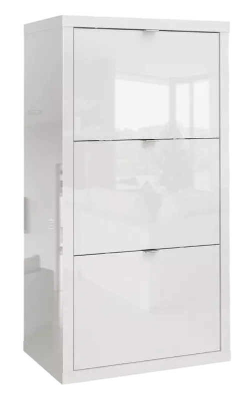 Фасады изготовлены из 16 мм ламинированной древесностружечной плиты производства компании «ЭГГЕР» - цвет «Белый». На лицевые поверхности корпуса нанесено высокоглянцевое лаковое покрытие. По периметру фасады закромлены кромкой ABS.
