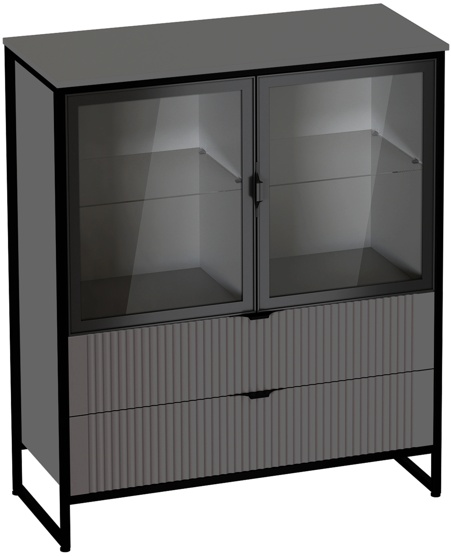 Тумба Нора, с полками и двумя ящиками, металл бруклин / графит