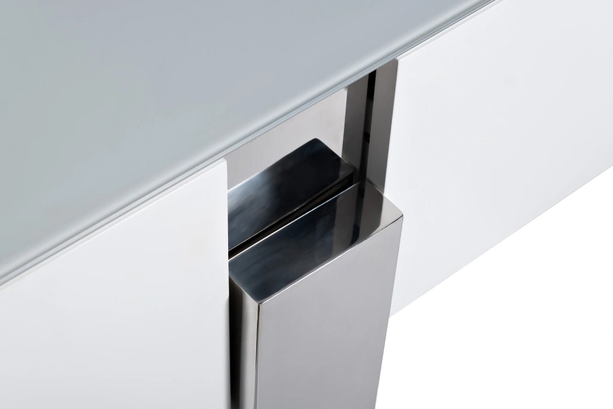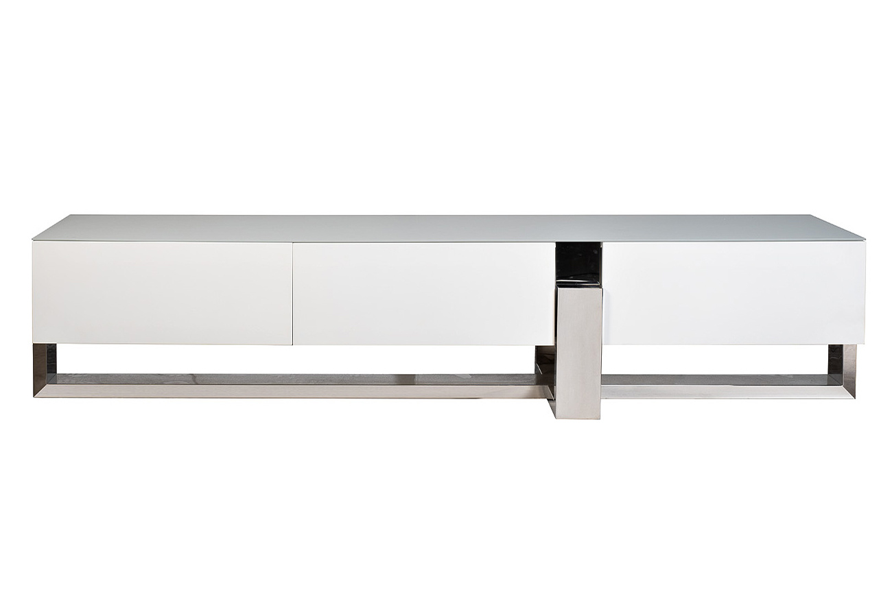 Эта тумба под телевизор — квинтэссенция архитектурной строгости и лаконичной эстетики. Глянцевая поверхность в дуэте с металлическим основанием формирует образ, в котором читается влияние минимализма и арт-деко. Чёткая геометрия линий и чистота белого цвета визуально облегчает пространство, подчёркивая современные интерьерные решения. Такая тумба станет идеальной основой для техники в гостиной в стиле хай-тек, минимализм или нео-футуризм.