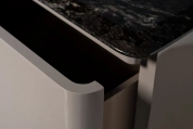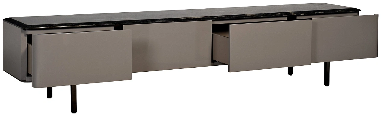 Утонченная тумба под телевизор в современном стиле станет изысканным дополнением элегантной гостиной. Натуральный мрамор, использованный для отделки столешницы, придает модели особый шарм и подчеркивает ее респектабельность. Сдержанный дизайн, основанный на игре фактур и лаконичности форм, позволяет тумбе под телевизор мрамор органично вписаться практически в любой современный интерьер. Вместительные отделения с выдвижными ящиками позволяют хранить необходимые вещи.Столешница вырезана из натурального мрамора! Рисунок и цвет каждой столешницы индивидуален, неповторим и уникален!