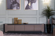 Лаконичная тумба под телевизор в современном стиле дополнит интерьер гостиной и станет идеальным местом для размещения бытовой техники и домашнего декора, хранения вещей. Минимализм в оформлении, сочетание стекла, МДФ и металла, оригинальный дизайн дверок – все это подчеркивает статусность данной модели. Дизайнерская тумба под телевизор в гостиной станет той самой изюминкой, которой не хватает многим современным интерьерам.
