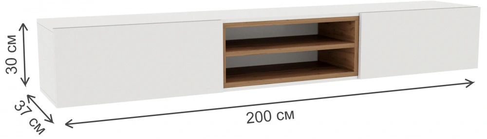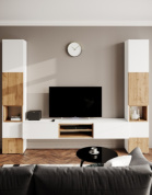 Тумба под ТВ Лонгфорд, c полками, белый / дуб вотан