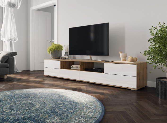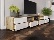 Тумба под ТВ Маллоу, дуб вотан / белый глянец