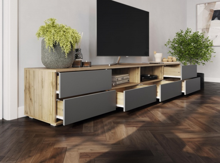 Тумба под ТВ Маллоу, дуб вотан / графит софт