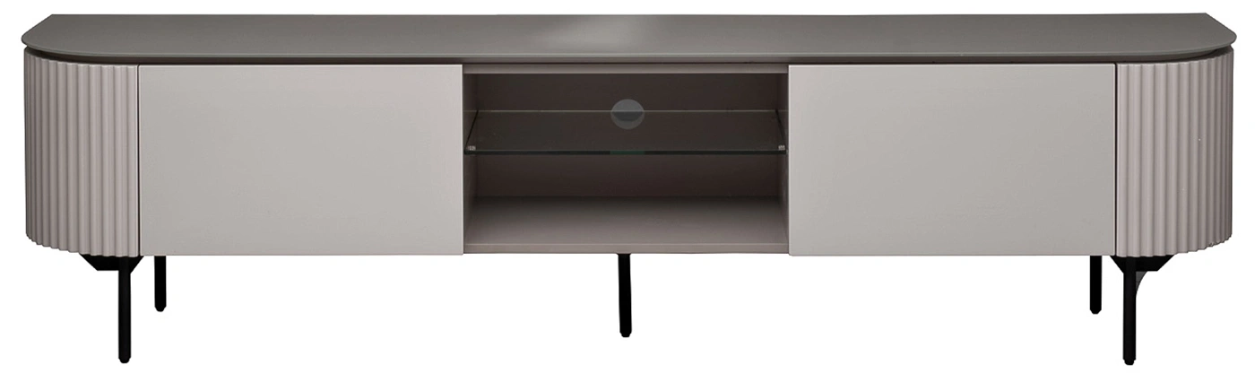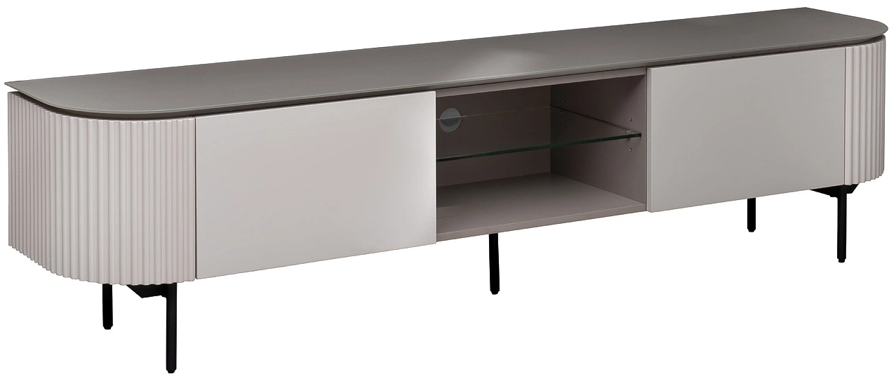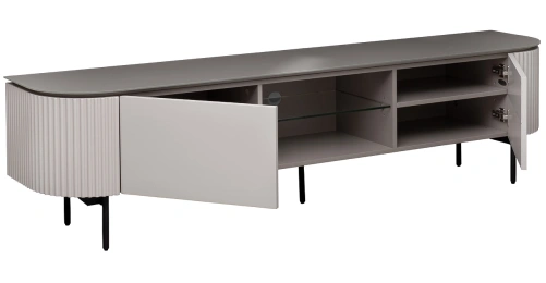 Дизайнерская тумба под телевизор SCALA светлого серо-бежевого оттенка из материалов премиального качества украсит собой любую современную гостиную, спальню, кабинет. Функционал этой модели гораздо шире, чем просто хранение вещей. Она выполняет роль эффектного акцента в интерьере, поверхность которого подходит для установки современных телевизоров. Тумба под телевизор органично вписывается в современные интерьеры жилых квартир и рабочих кабинетов. С ней можно играть на контрастах или оформлять пространство в монохроме. Глянец тумбы актуально вписывается в современные интерьерные решения.