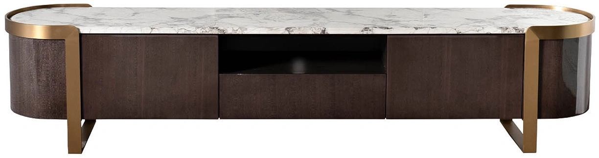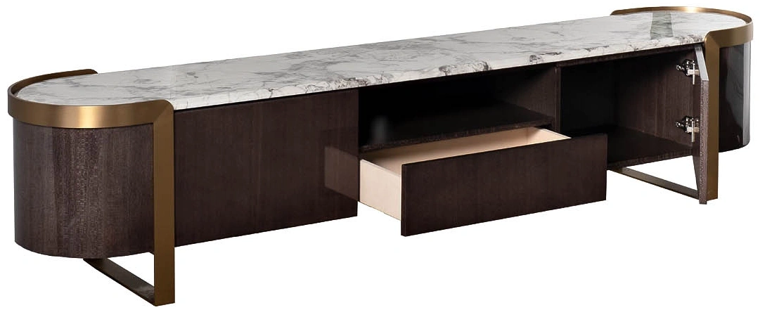 Современная тумба под телевизор из коллекции Sevilla - практичное решение для удобного и лаконичного размещения домашней техники в гостиной или спальне. Длинная тумба в современном стиле разместит на себе современные модели TV и аксессуары к нему. Мебель оснащена специальными ящиками, в которых удобно хранить комплектующие бытовой техники или другие необходимые мелочи. Тумба создана в изысканных дымчато-серых тонах и объединила в себе последние тенденции мебельного дизайна. Отделка выполнена из современных материалов с использованием шпона древесных пород, а столешница имитирует мраморное покрытие, что делает тумбу под телевизор еще более элегантной.