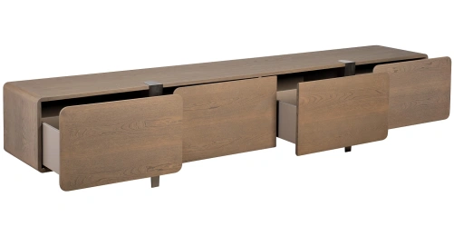 Тумба под телевизор из коллекции Smooth — это не просто мебель, а стратегически важный элемент в ландшафте современной гостиной. Ее вытянутая горизонтальная форма и безупречно гладкие фасады, выполненные из шпона натурального дерева подчеркивают стремление к минимализму и функциональной чистоте. Это воплощение продуманного дизайна, где каждый элемент работает на создание атмосферы порядка и визуальной гармонии. В актуальных интерьерных концепциях, где мультимедийные системы интегрируются максимально незаметно, эта тумба становится идеальным решением. Она обеспечивает достаточно места для аккуратного размещения техники, сохраняя при этом общую эстетику помещения. Ее низкий профиль и натуральные оттенки позволяют ей органично вписаться как в просторные, так и в более компактные пространства.